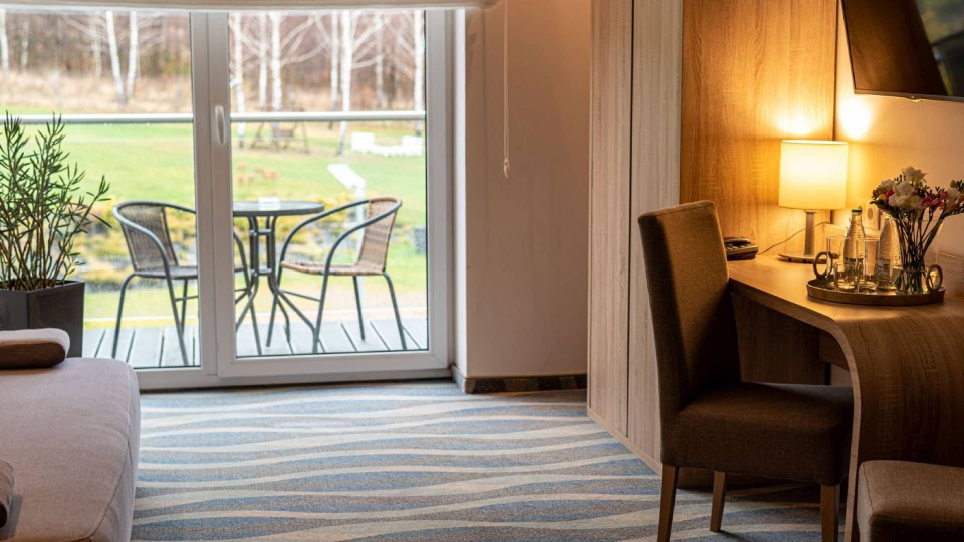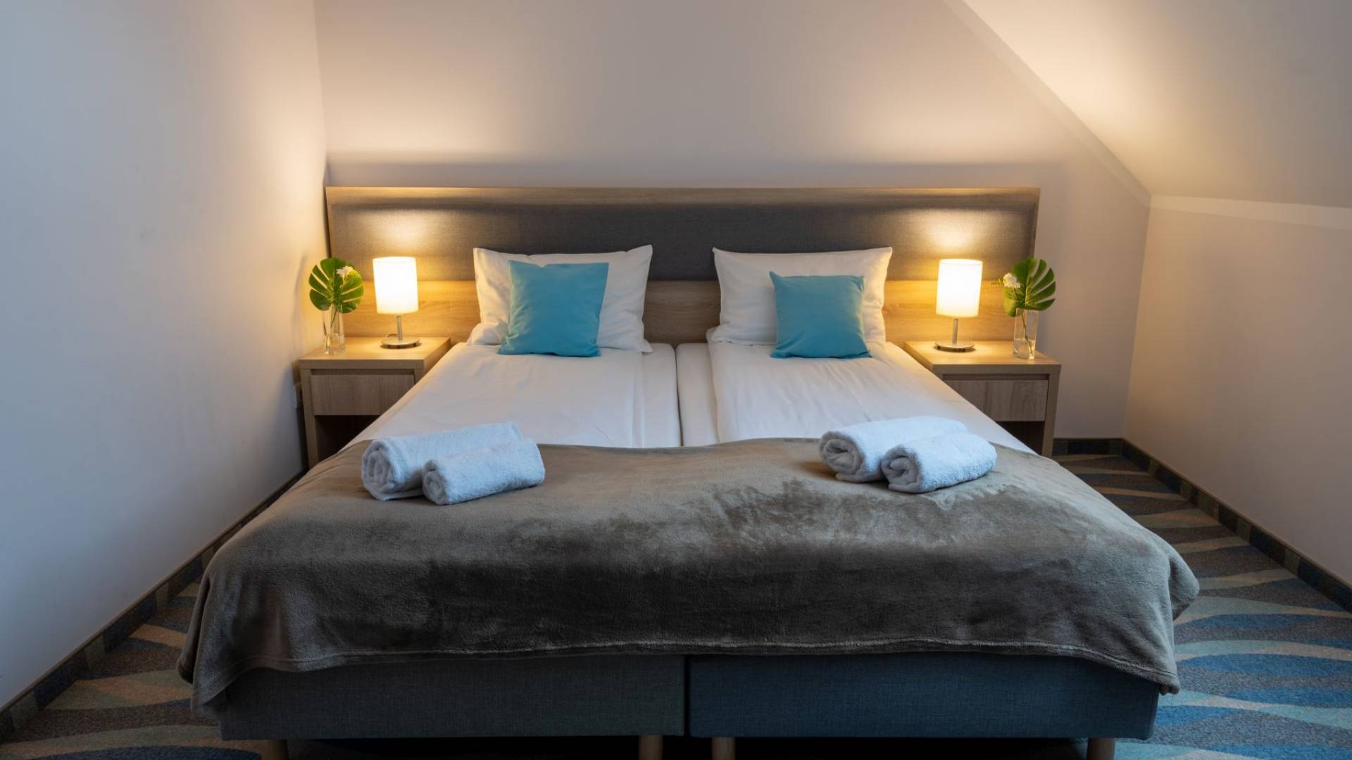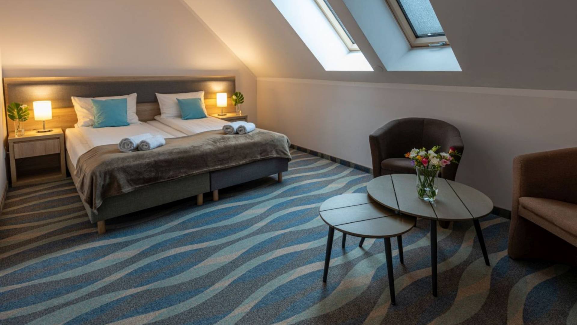 Apartament z balkonem o powierzchni 40m2. Apartament składa się z sypialni oraz strefy dziennej. W sypialni dwa pojedyncze łóżka o powierzchni 90x200m, w strefie dziennej rozkładana sofa. Łazienka z prysznicem W każdym pokoju znajduje się woda mineralna, monitor smart TV, minibarek, suszarkę, kosmetyki hotelowe, wifi, telefon.