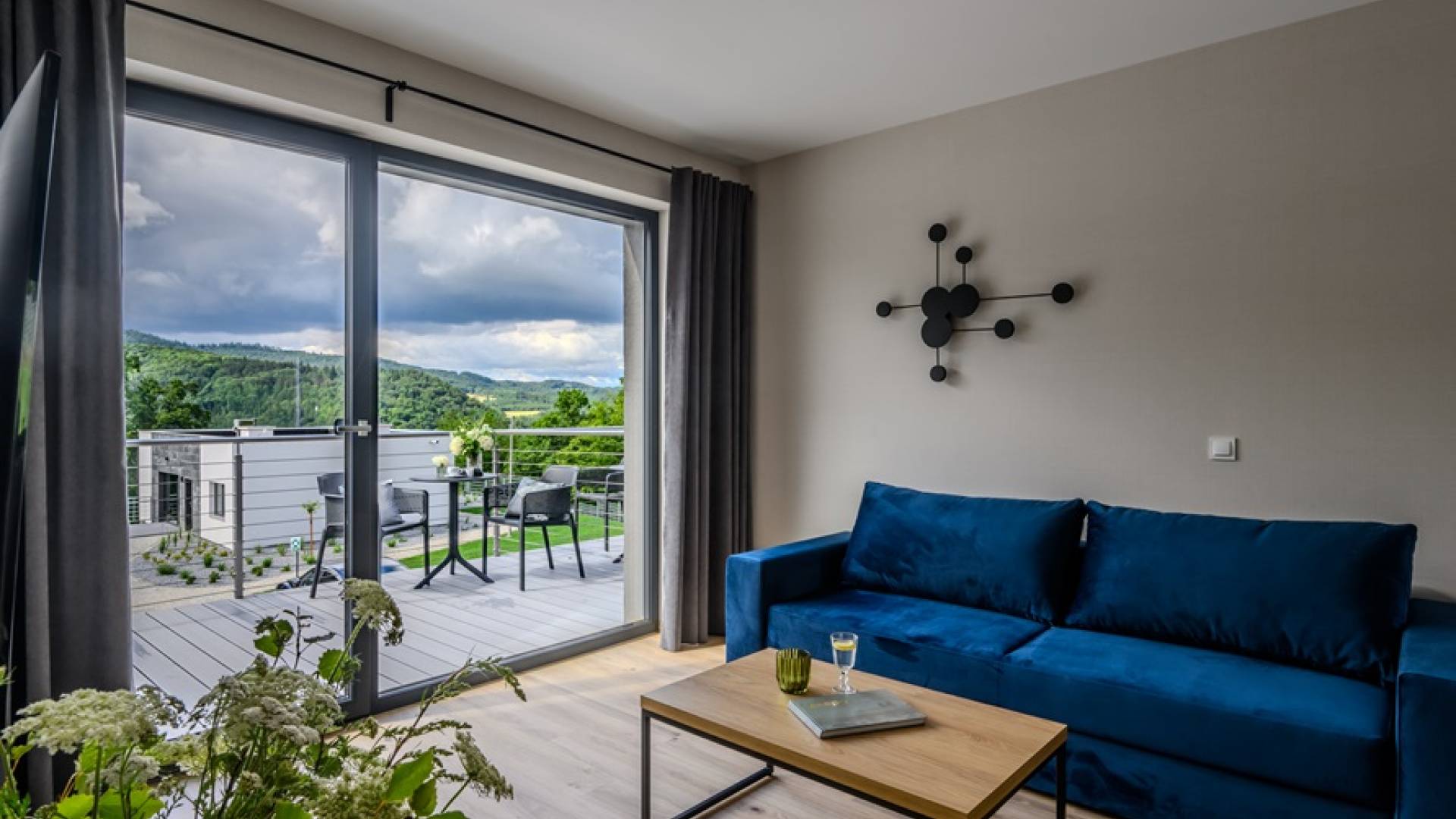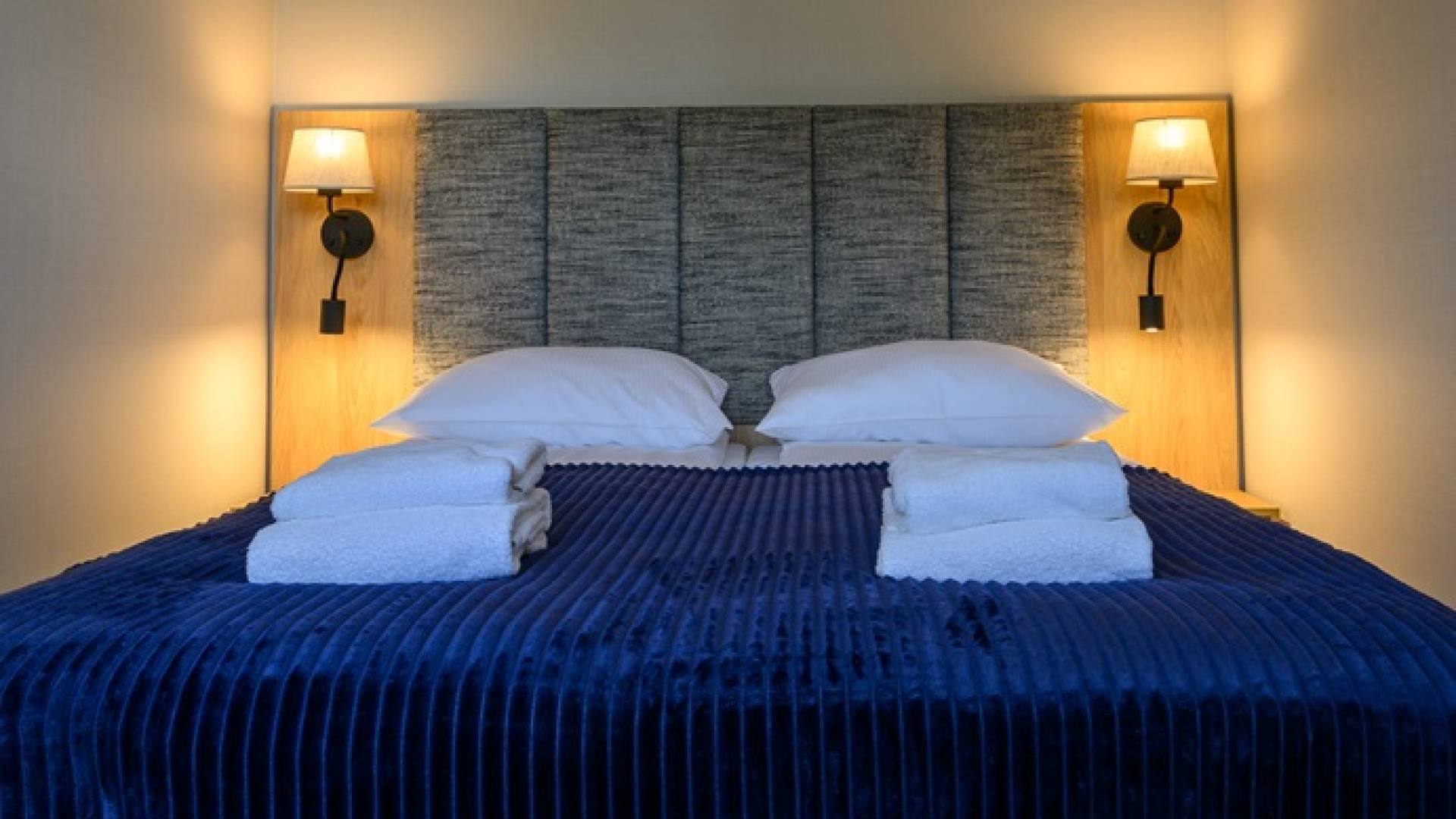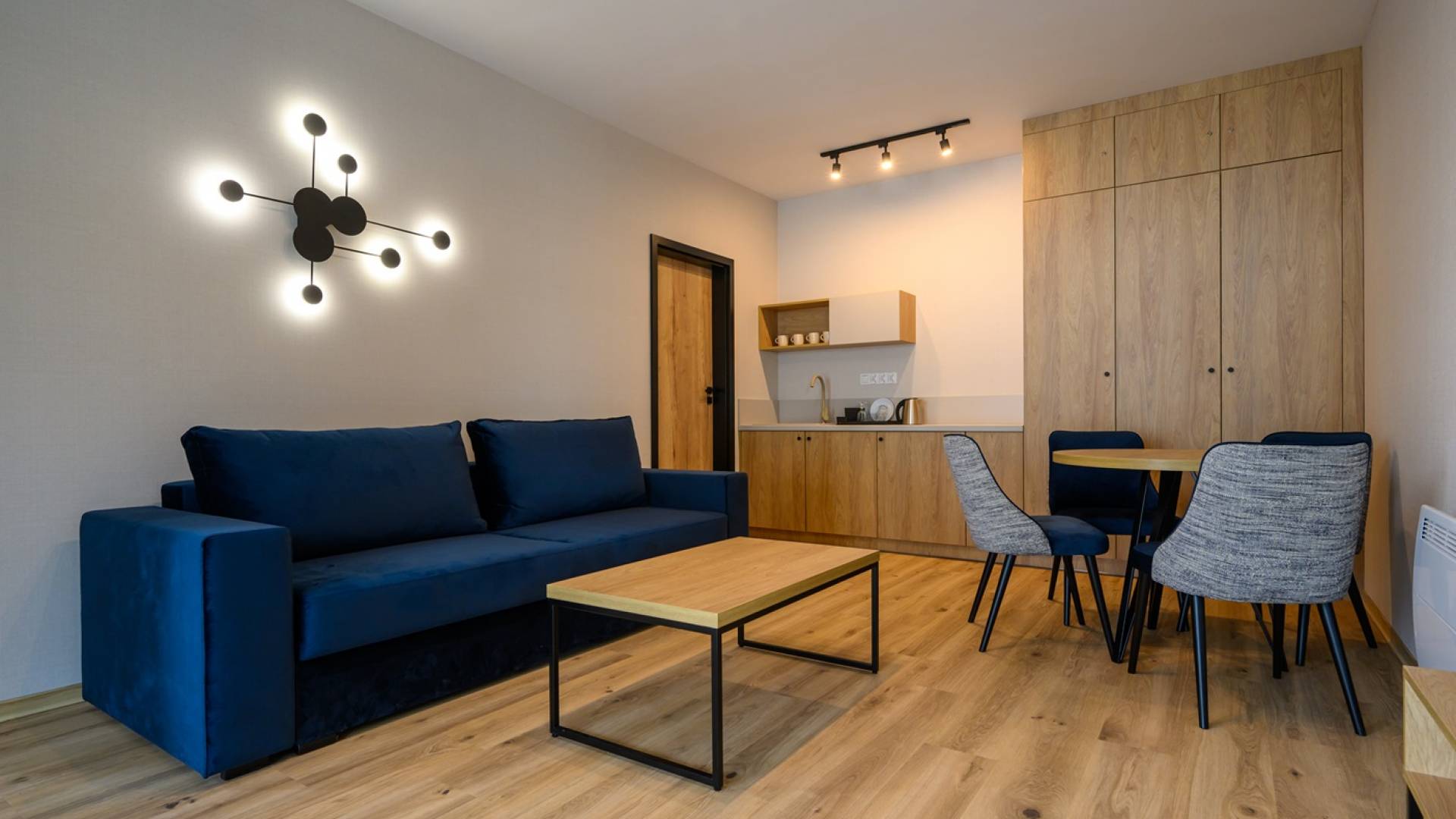 Nowoczesne Apartamenty z salonem i sypialnią o powierzchni 40m2, położone 300m od głównego budynku hotelowego. W sypialni dwa łóżka jednoosobowe (o wymiarach 90cm x 200 cm) z możliwością połączenia. W salonie rozkładana kanapa (90cm x 210cm). Apartament wyposażony w lodówkę, czajnik elektryczny, expres do kawy (kapsułkowy), komplet naczyń i sztućców, zestaw przyborów kuchennych, monitor smart TV, stół jadalny z krzesłami, wifi. Łazienka z prysznicem. Miejsce parkingowe. * Zdjęcia pokazują przykładowy pokój danego typu. Poszczególne pokoje mogą się różnić między sobą rozkładem.