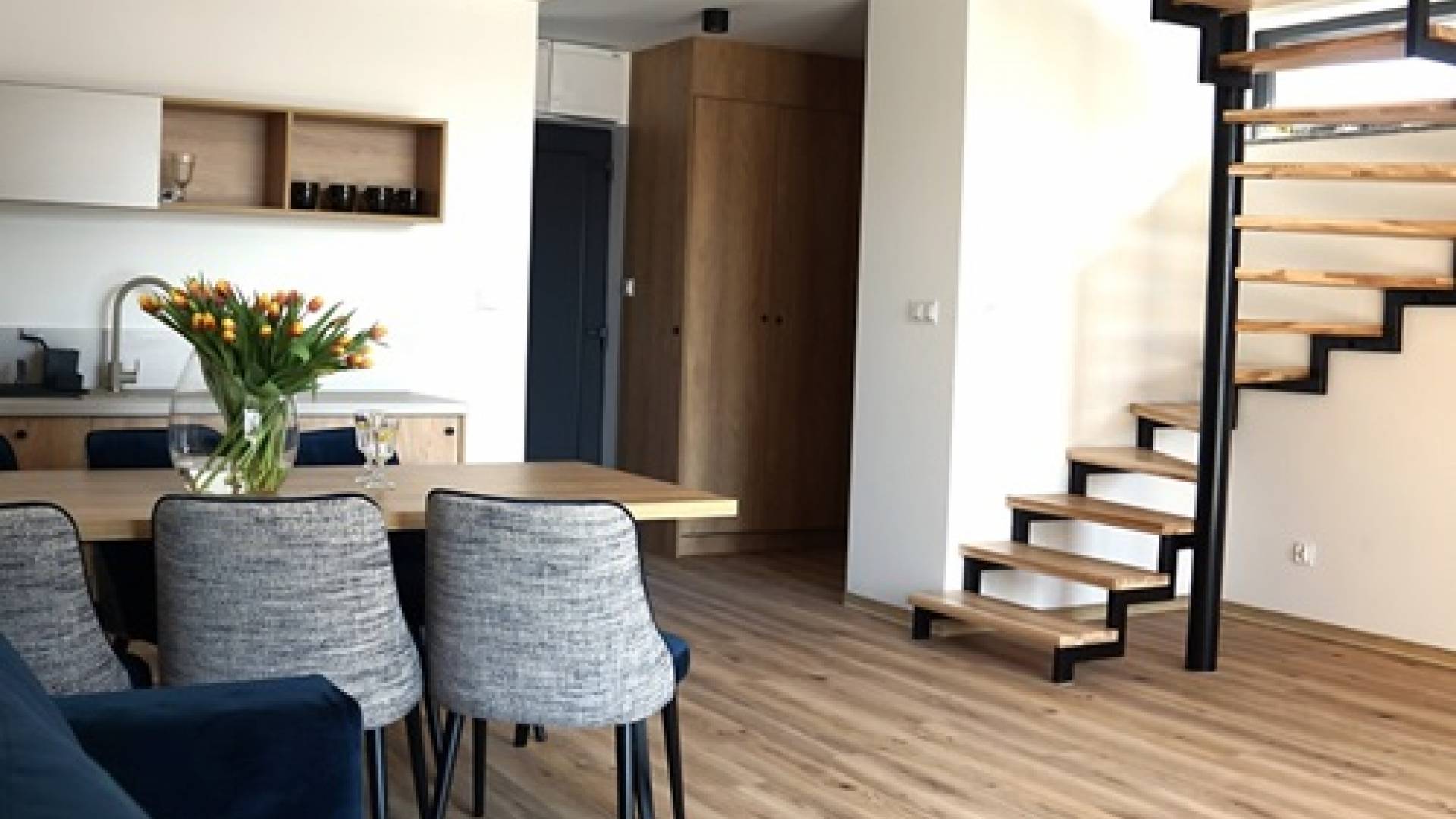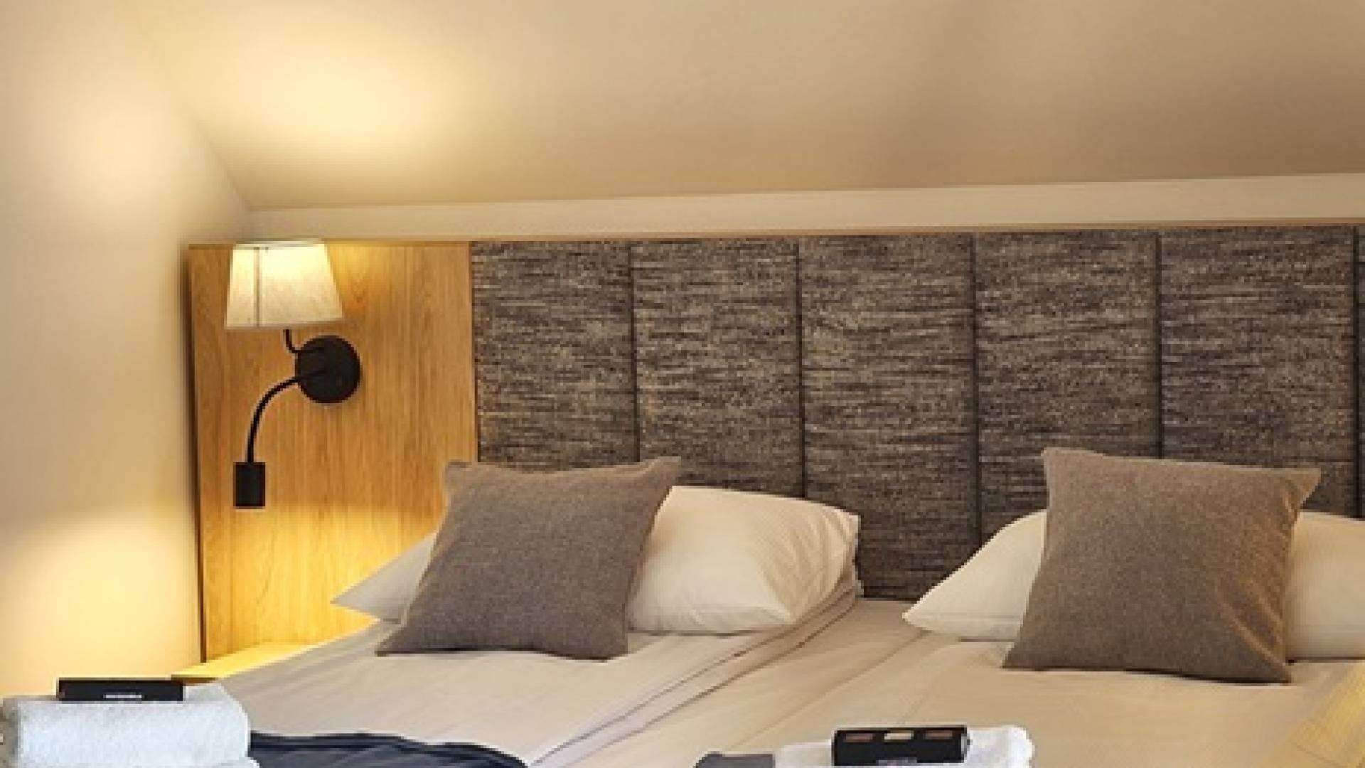 Nowoczesne Domki położone 150m od głównego budynku hotelu. Parter domku składa się z salonu z aneksem gdzie znajdziemy rozkładaną kanapę. W każdym domku na parterze znajduje się łazienka oraz przestronny taras. Na pierwszym piętrze dwie sypialnie z dwoma pojedynczymi łóżkami (90cm x 200 cm), łazienka. Domek wyposażony w lodówkę, czajnik elektryczny, express do kawy (kapsułkowy), komplet naczyń i sztućców, zestaw przyborów kuchennych, monitor smart TV, stół jadalny z krzesłami, wifi. Miejsce parkingowe.