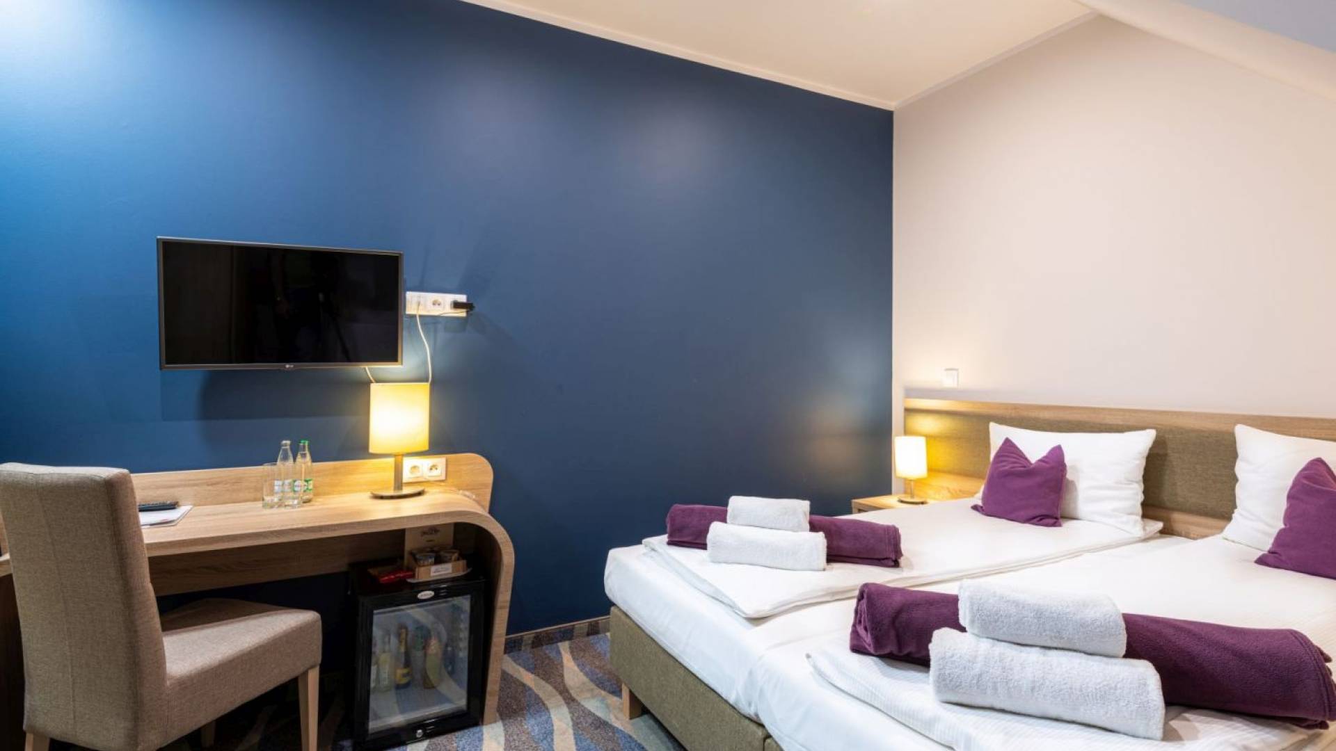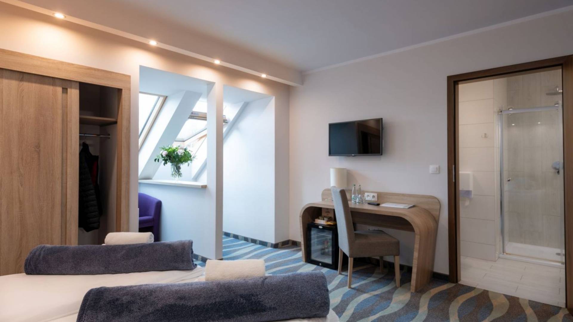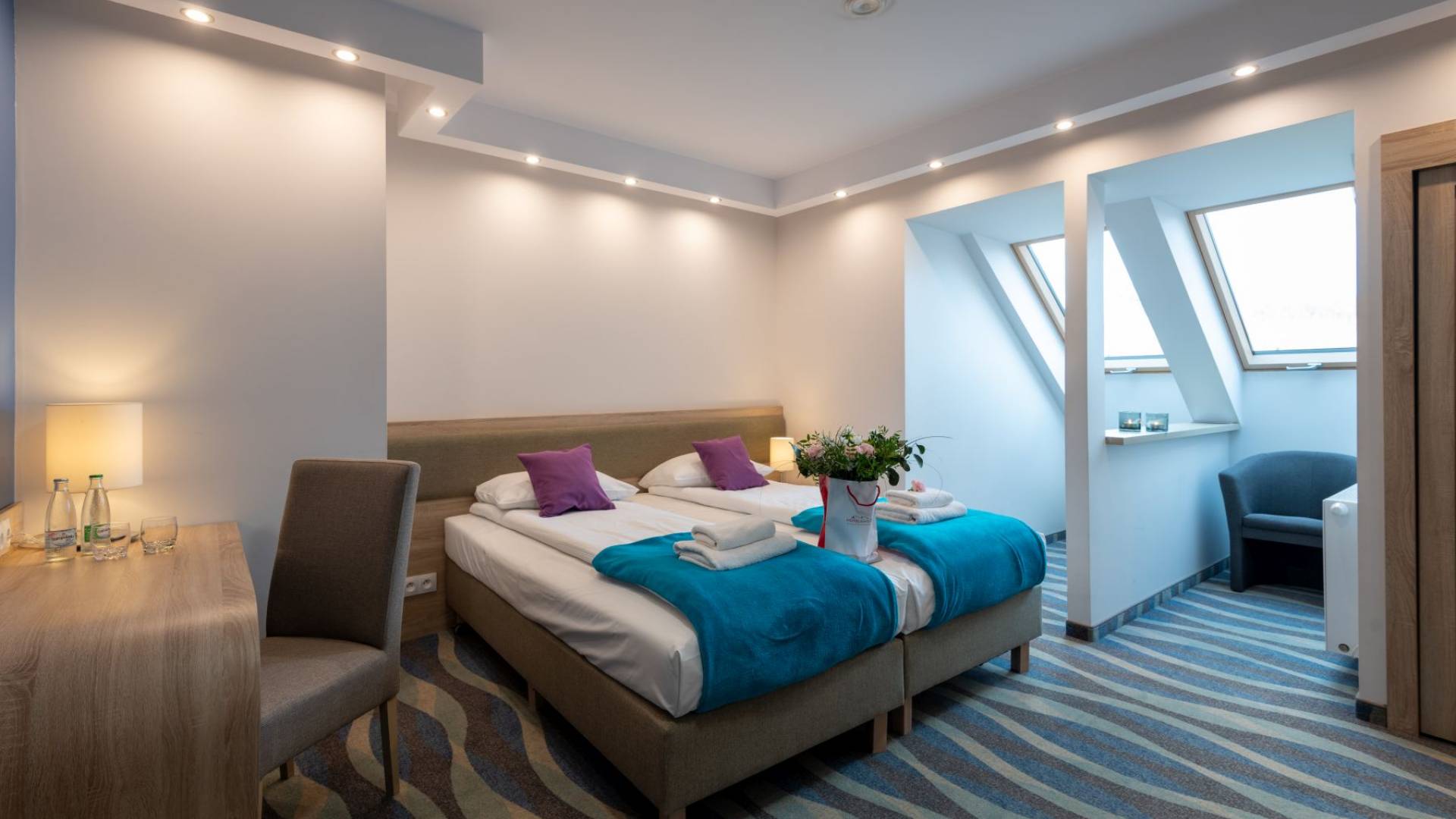 Pokój standard o powierzchni 12m2. W pokoju znajdują się dwa łóżka o wymiarach 90x200m z możliwością łączenia. Łazienka wyposażona w prysznic. W każdym pokoju znajduje się woda mineralna, monitor smart TV, minibarek, suszarkę, kosmetyki hotelowe, wifi, telefon.