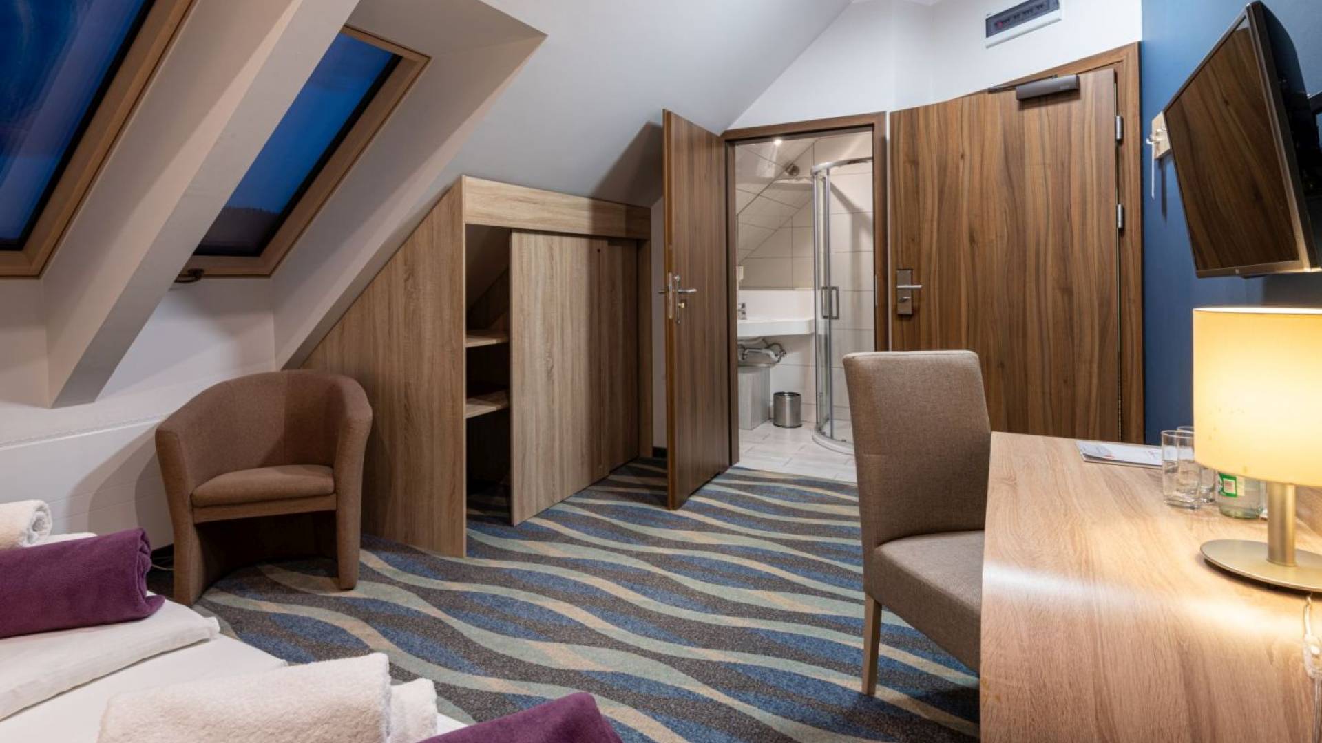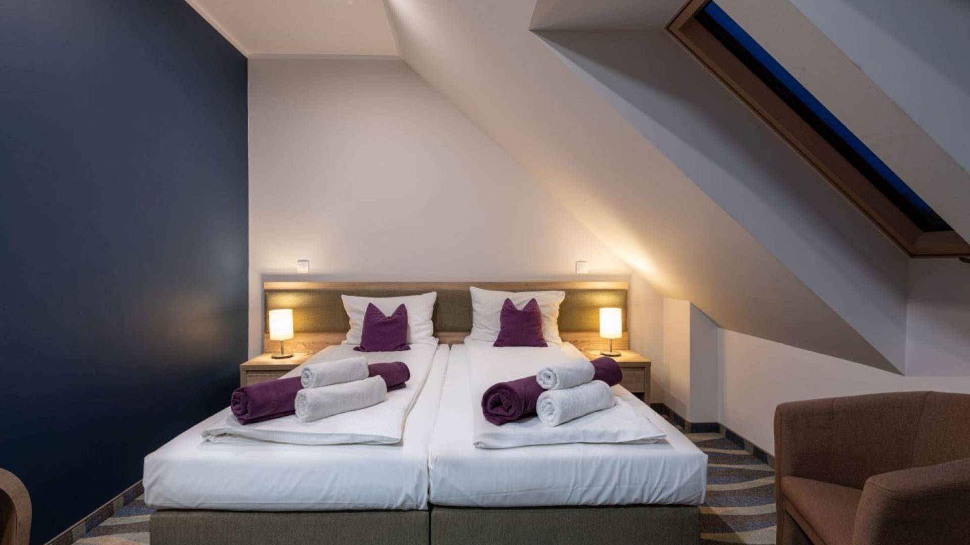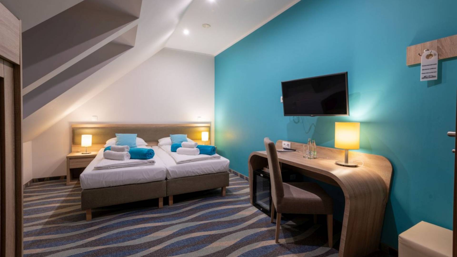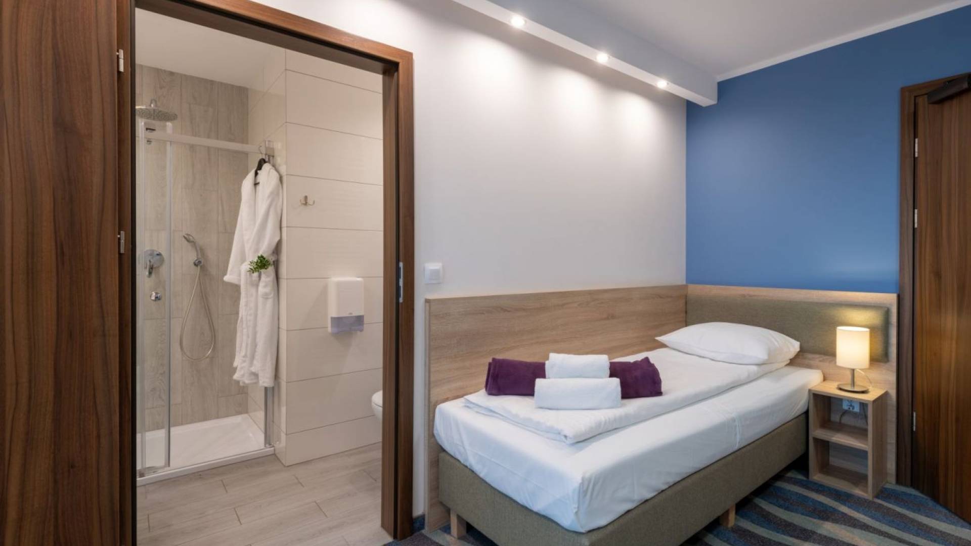 Pokój standard o powierzchni 12m2. W pokoju znajdują się dwa łóżka o wymiarach 90x200m z możliwością łączenia. Łazienka wyposażona w prysznic. W każdym pokoju znajduje się woda mineralna, monitor smart TV, minibarek, suszarkę, kosmetyki hotelowe, wifi, telefon.